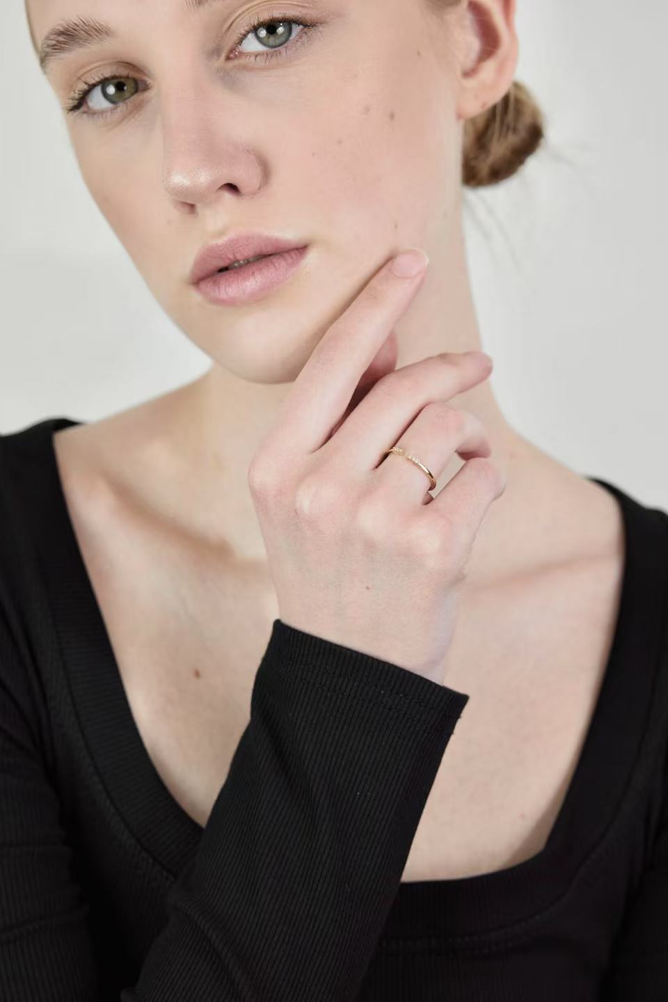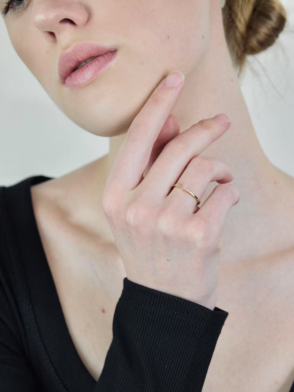 鑲嵌精緻鋯石,如精緻花朵綻放於指尖。
