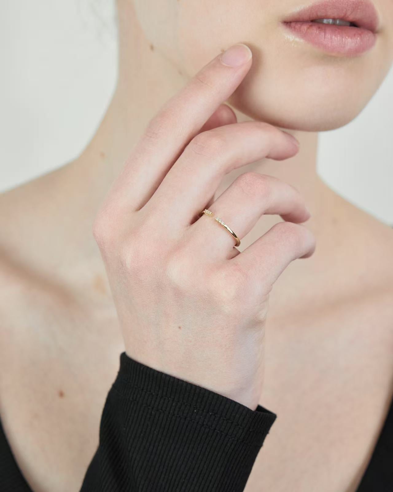 Lagom 暉鑽花開 Radiant Bloom 925純銀開口排鑽戒指